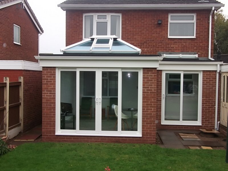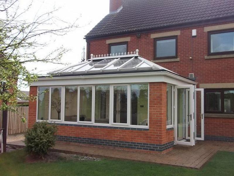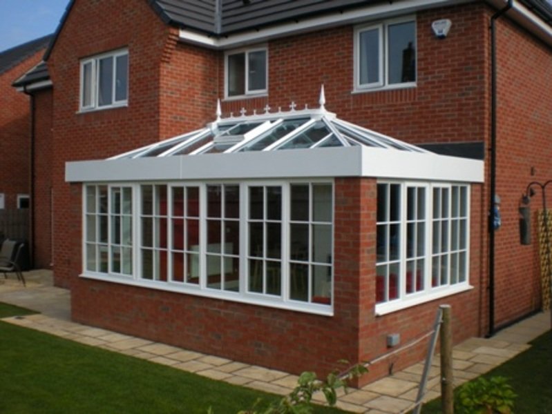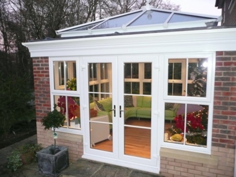 An Orangery differs from a Conservatory with its unique roof structure. Comprising of a Deep Box Section Outer Perimeter and Glazed Central Atrium. Abbey Glass & Burton Glass can design and build your dream Orangery in a wide choice of finishes in PVCu, Aluminium or Hardwood. Our Orangery roofing system can be fitted to a conventional Conservatory base and frames and can also be retro-fitted to upgrade an existing Conservatory. More substantial base and brickwork options are available, from Brick Pillars to Cut Block Stone Quoins. The Plastered internal roof Box Sections offer great scope for finishing touches, such as down lighters and other fixtures & fittings.