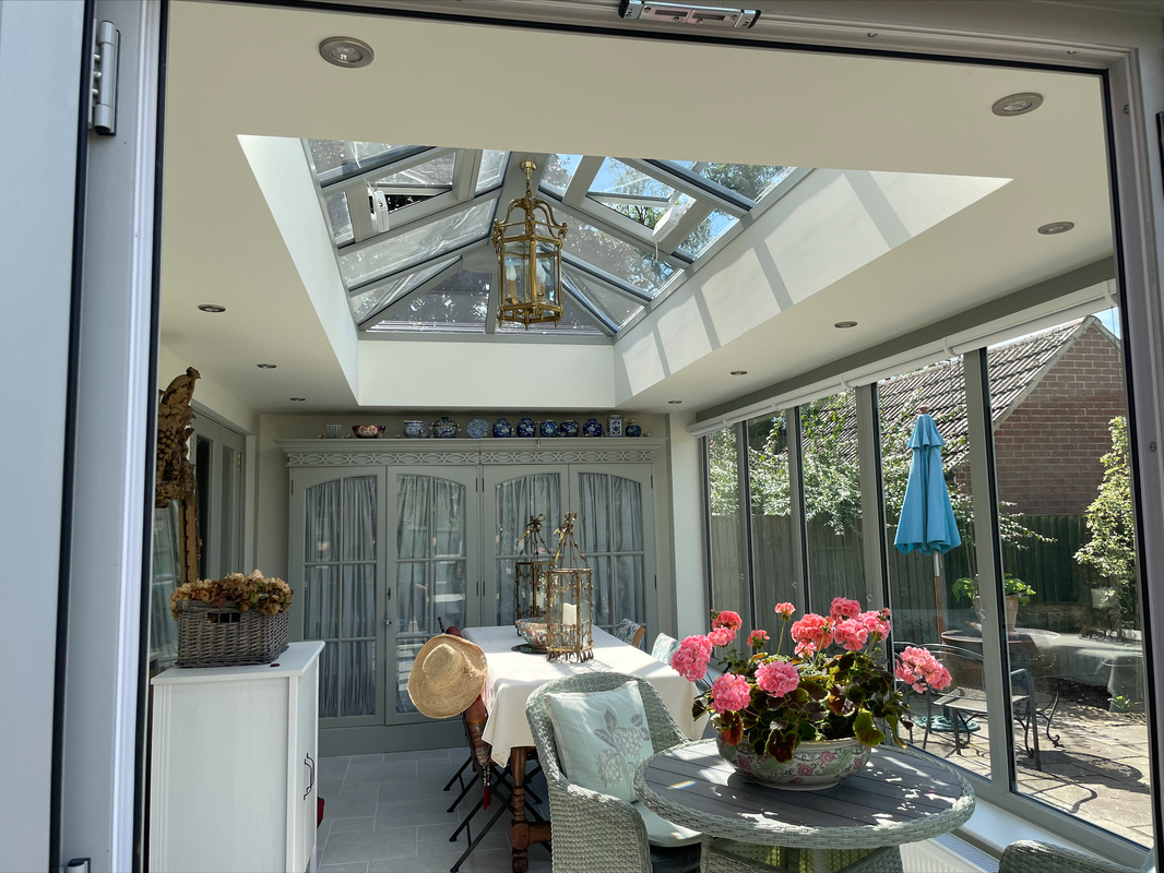An Abbey Glass & Burton Glass designed Orangery is a spacious light-filled extension to your home. Bright throughout the day, making the most ot the natural light being thrown in from above, and cosy or intimate at night to suit your mood.